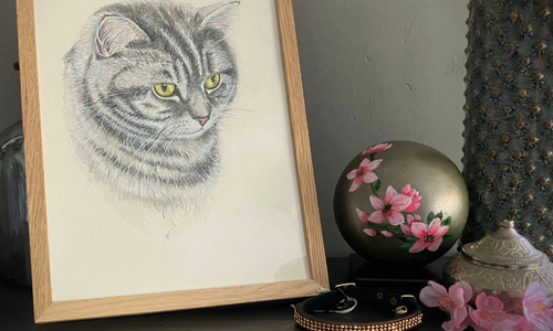 Senta was een belangrijk onderdeel van onze familie door de jaren heen. Het was een dame met een geheel eigen karakter, maar een persoonlijkheid die altijd aanwezig was in zowel vreugde als verdriet. Helaas overleed Senta op vroege leeftijd door een kort ziekteproces. Deze streng garen vertalen de vacht en ogen van Senta als een altijd blijvende herinnering.